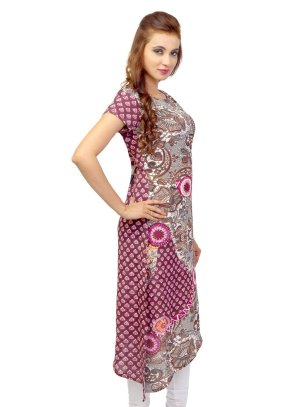 Ladybond kurti is constructed with Moss Crepe fabric that flatters just about any body shape. Different type of cut and stylish shape of high low on either side, finished with an exquisite digital print, fashioned from cotton stain, rich and cool look fabric. This kurti is designed to provide you sheer all day comfort to make it stylish, wear it with jeggings, leggingns pants and with strappy sandales with stone jewellery.