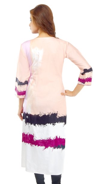 Finished with an exquisite print and showcasing a front slit, this Stylish kurta from LADYBOND will lend a flattering silhouette. Fashioned from cotton Satin fabric, this kurta is designed to provide you with sheer all day comfort. Team it with pants and strappy sandals.