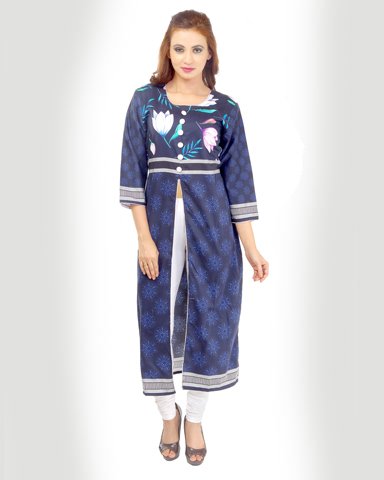 Ladybond Digital Cotton Satin Front Slit Kurtis