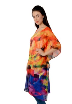 LLook like the perfect definition of an western beauty and steal hearts by wearing Multi colored Eco friendly Poncho/Kaftaan from Ladybond. Made from Georgette, this Poncho/Kaftaan has a fabulous for an opulent design and comes in smart fit sizes. This Poncho/Kaftaan can be teamed with churidar, jeans, and a pair of sandals to complete your stylish look. Printed in Italain Technology with German Inks.